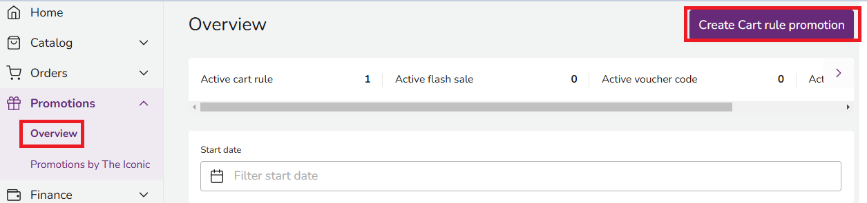 On the Seller Promotion Overview page, you can view the status of your promotions, as well as THE ICONIC’s promotion that you have joined.