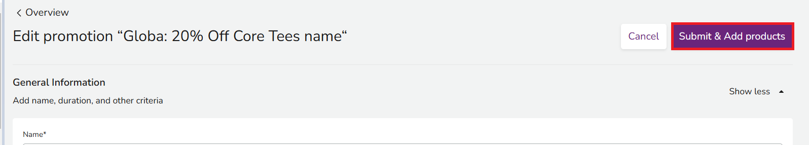 The Product section controls your eligible products for the promotion that can be submitted.