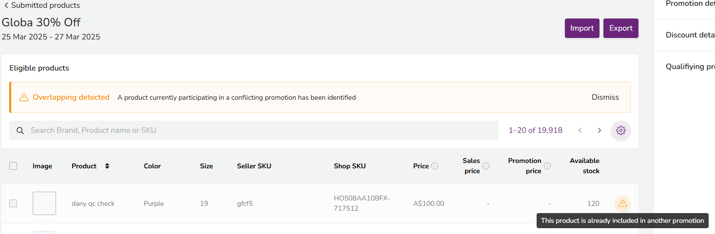 Sellers will not be able to add SKU to multiple promotions in overlapping periods.