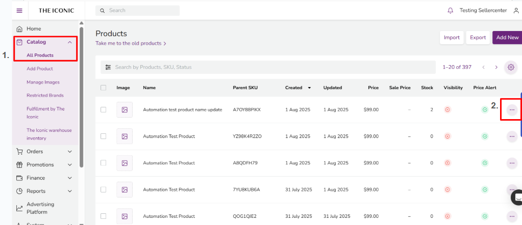 - From the drop-down menu, select **Catalog**, then choose **All Products**.
