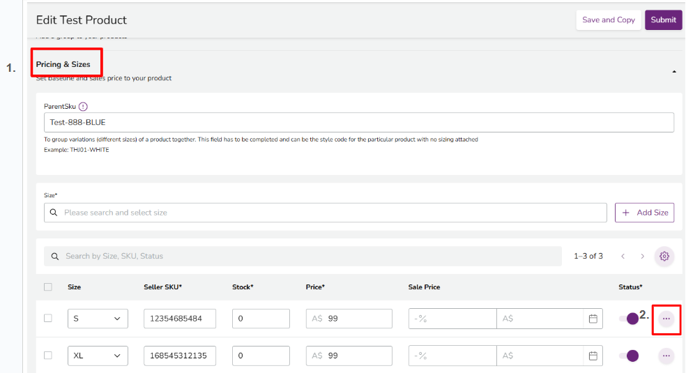 - If you need to update the EAN for an existing product, use the search bar to find the product by name or SKU