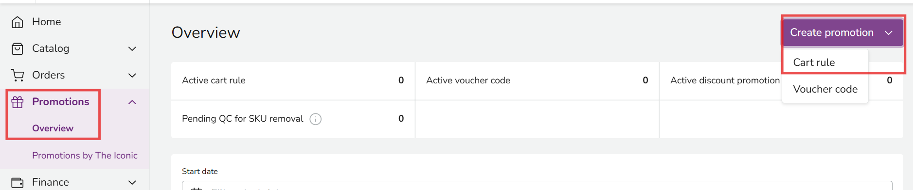 Go to Promotions - Overview - Create Promotion - Cart Rule