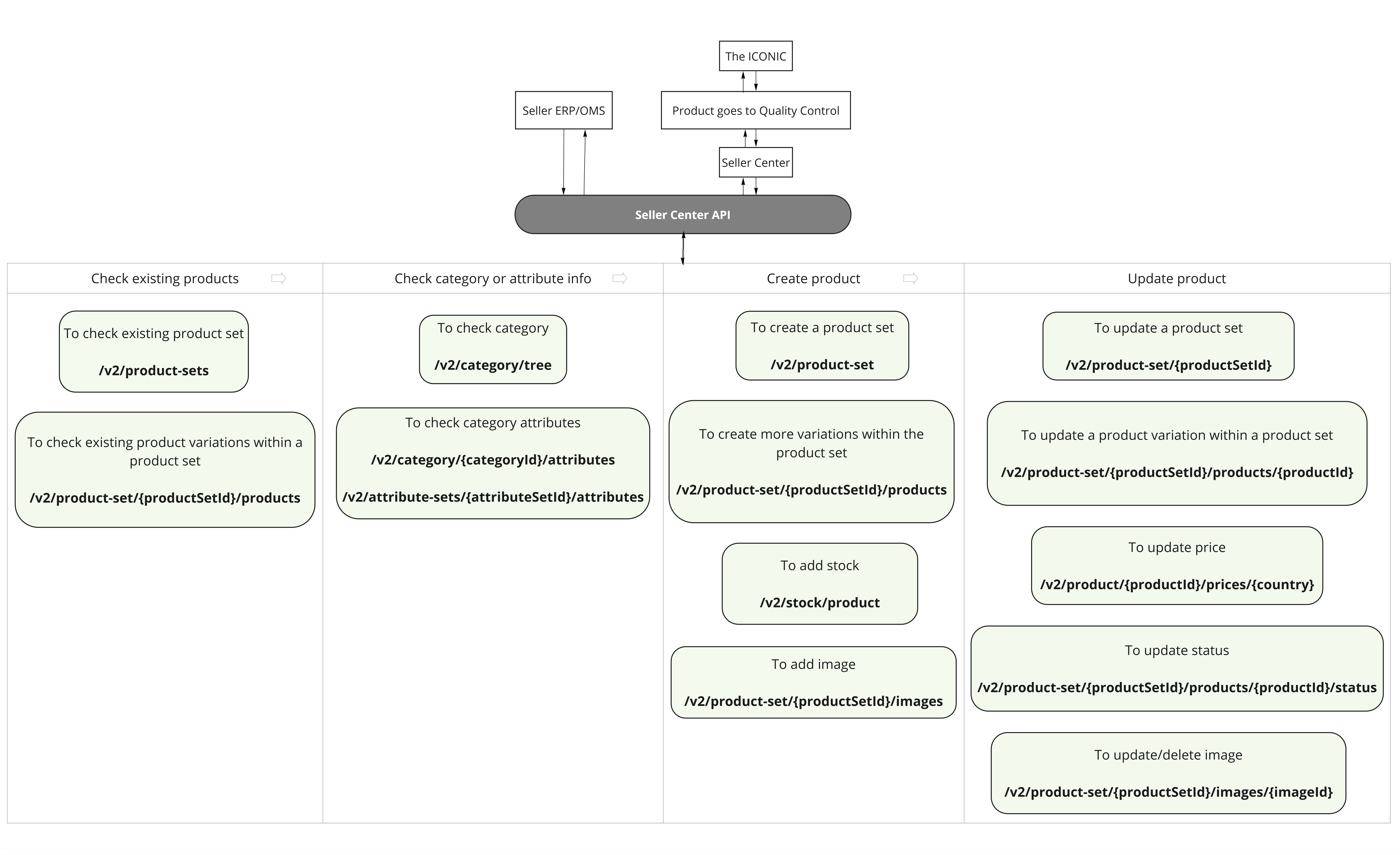 Seller Center is our User Interface which is used to manage and update your shop and products. An API Integration can enable you to connect your systems to Seller Center, providing various levels of integration i.e. stock management, order processing and product creation.